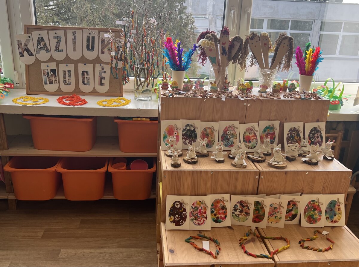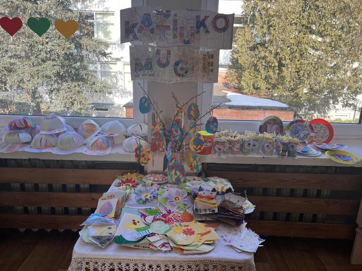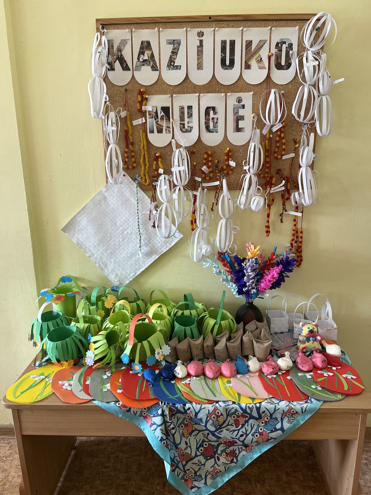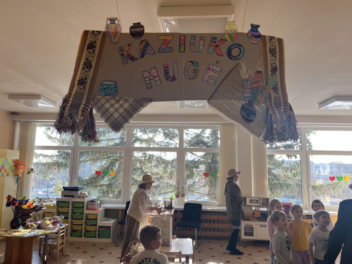 Šiandien mus aplankė Kazys ir Kazyte, kurie keliavo po grupes ir džiugino vaikus. Kaziukas ir Kazytė kartu su mažaisiais šoko smagius šokius, dainavo linksmas daineles bei deklamavo išmoktus eilėraščius. Vaikai aktyviai įsitraukė, drąsiai pasirodė ir džiaugėsi linksmu šurmuliu. Pasilinksminę su vaikais Kazys ir Kazyte apžiūrėjo vaikų gamintus įvairius rankdarbius. Jie gyrė vaikų kūrybiškumą, kruopštumą ir pastangas. Vakare grupėse sulaukėme gausaus būrio pirkėjų – vaikų tėvelių, kurie mielai apžiūrėjo ir įsigijo vaikučių rankomis pagamintų dirbinių. Mugėje netrūko šurmulio, šypsenų ir geros nuotaikos. Šventė subūrė bendruomenę ir paliko daug gražių prisiminimų.