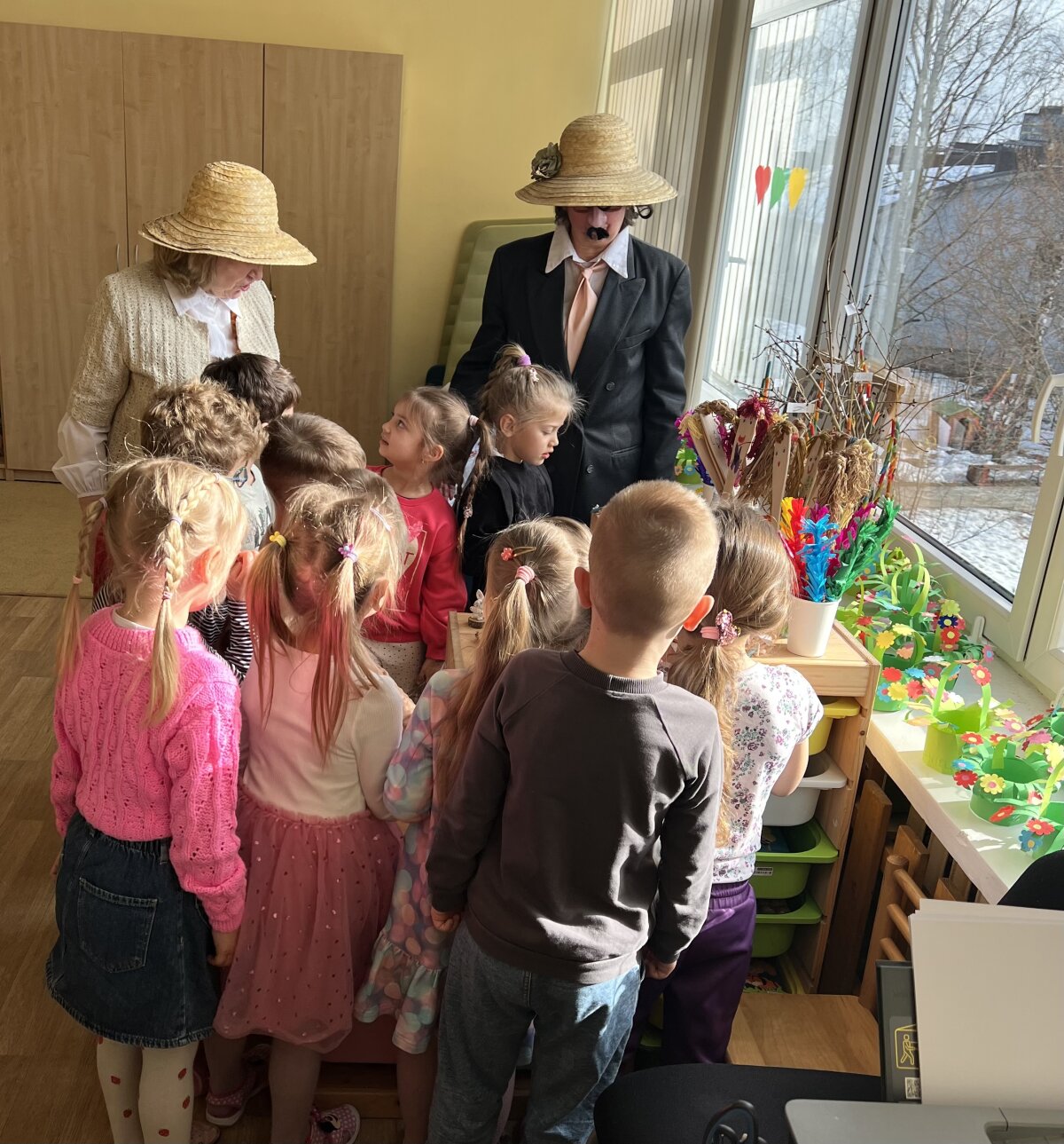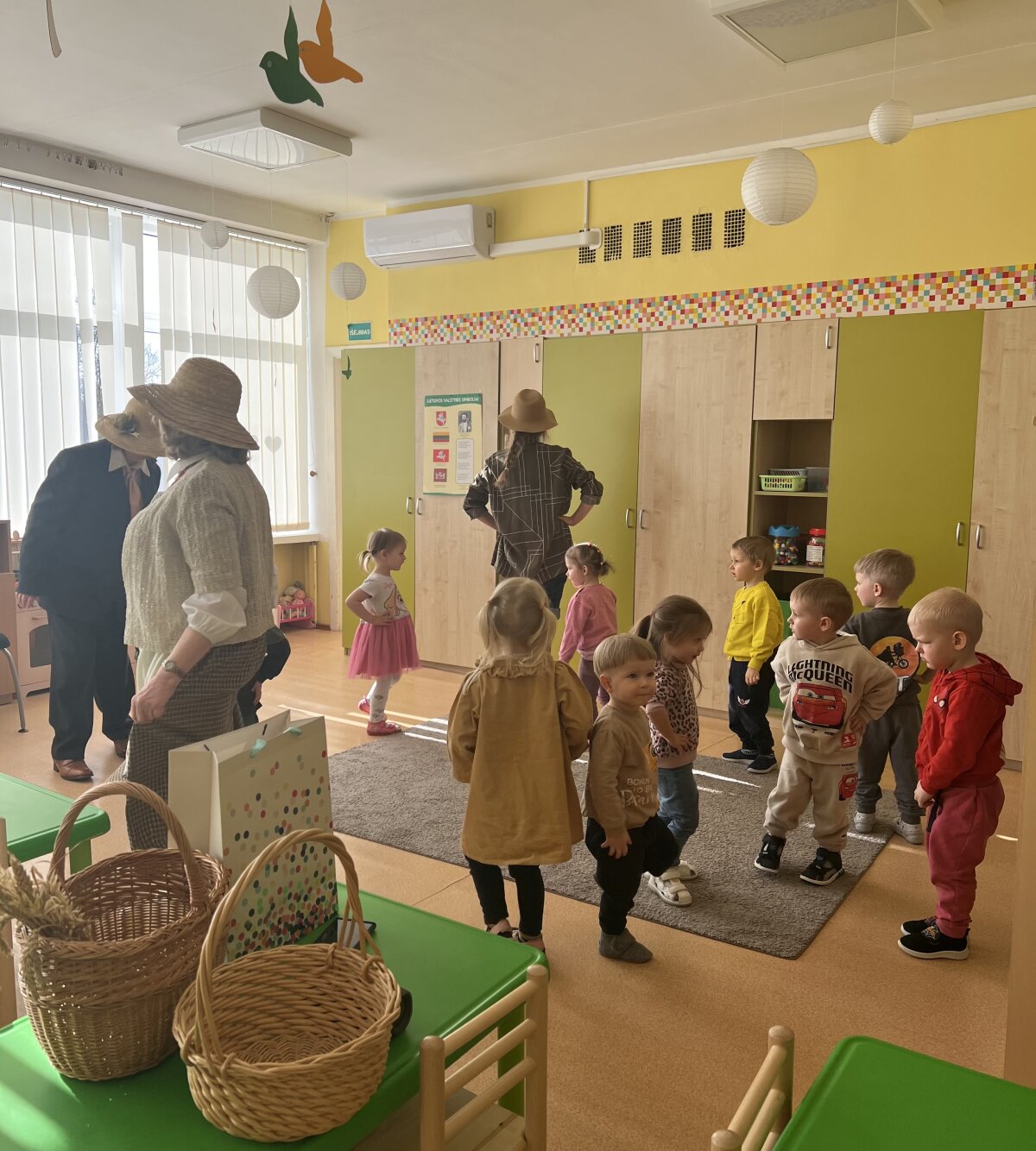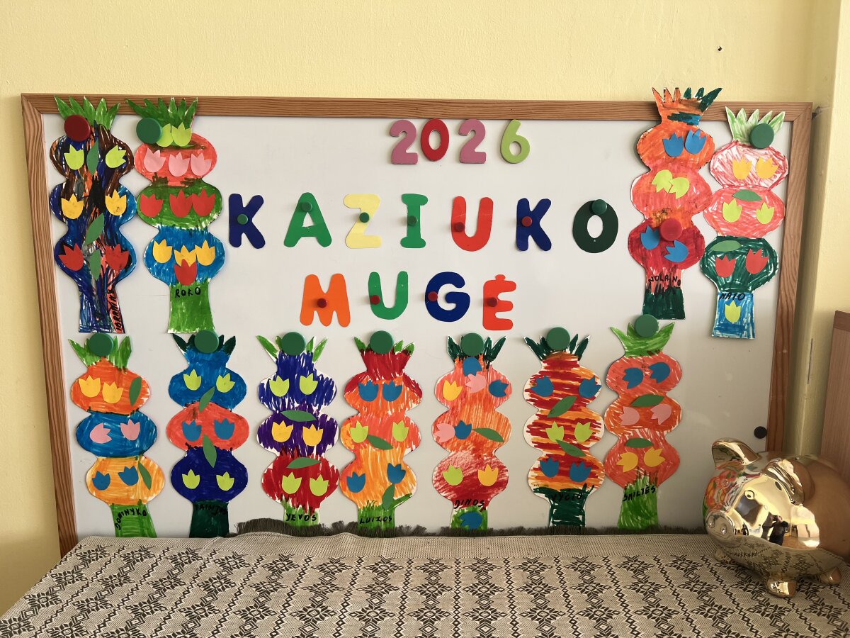 Šiandien mus aplankė Kazys ir Kazyte, kurie keliavo po grupes ir džiugino vaikus. Kaziukas ir Kazytė kartu su mažaisiais šoko smagius šokius, dainavo linksmas daineles bei deklamavo išmoktus eilėraščius. Vaikai aktyviai įsitraukė, drąsiai pasirodė ir džiaugėsi linksmu šurmuliu. Pasilinksminę su vaikais Kazys ir Kazyte apžiūrėjo vaikų gamintus įvairius rankdarbius. Jie gyrė vaikų kūrybiškumą, kruopštumą ir pastangas. Vakare grupėse sulaukėme gausaus būrio pirkėjų – vaikų tėvelių, kurie mielai apžiūrėjo ir įsigijo vaikučių rankomis pagamintų dirbinių. Mugėje netrūko šurmulio, šypsenų ir geros nuotaikos. Šventė subūrė bendruomenę ir paliko daug gražių prisiminimų.